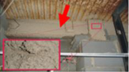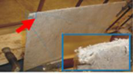 흡음재 석면함유 질석 골재에 혼입된 미세한 마감재 |