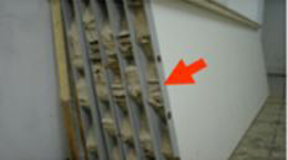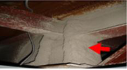 흡음재 석면함유 질석 골재에 혼입된 미세한 마감재 |